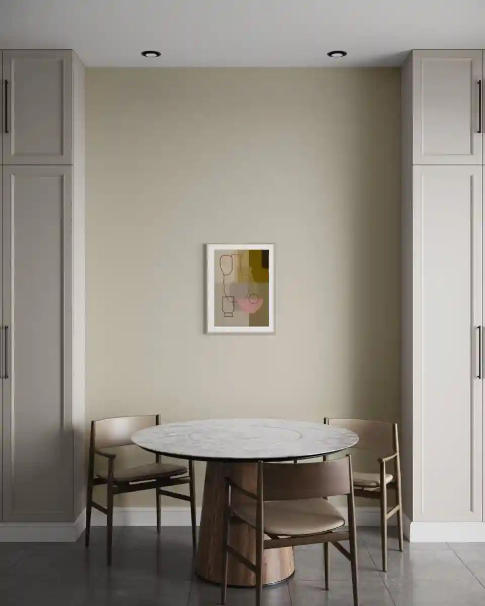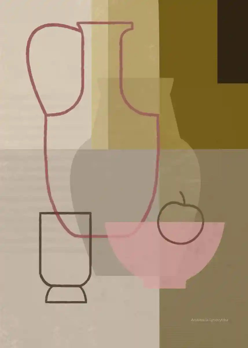 Мінімалістичний артпостер із абстрактними формами та теплими кольорами. Робота створює відчуття спокою й балансу, легко вписується в сучасний інтерʼєр і додає простору мʼякого художнього акценту.