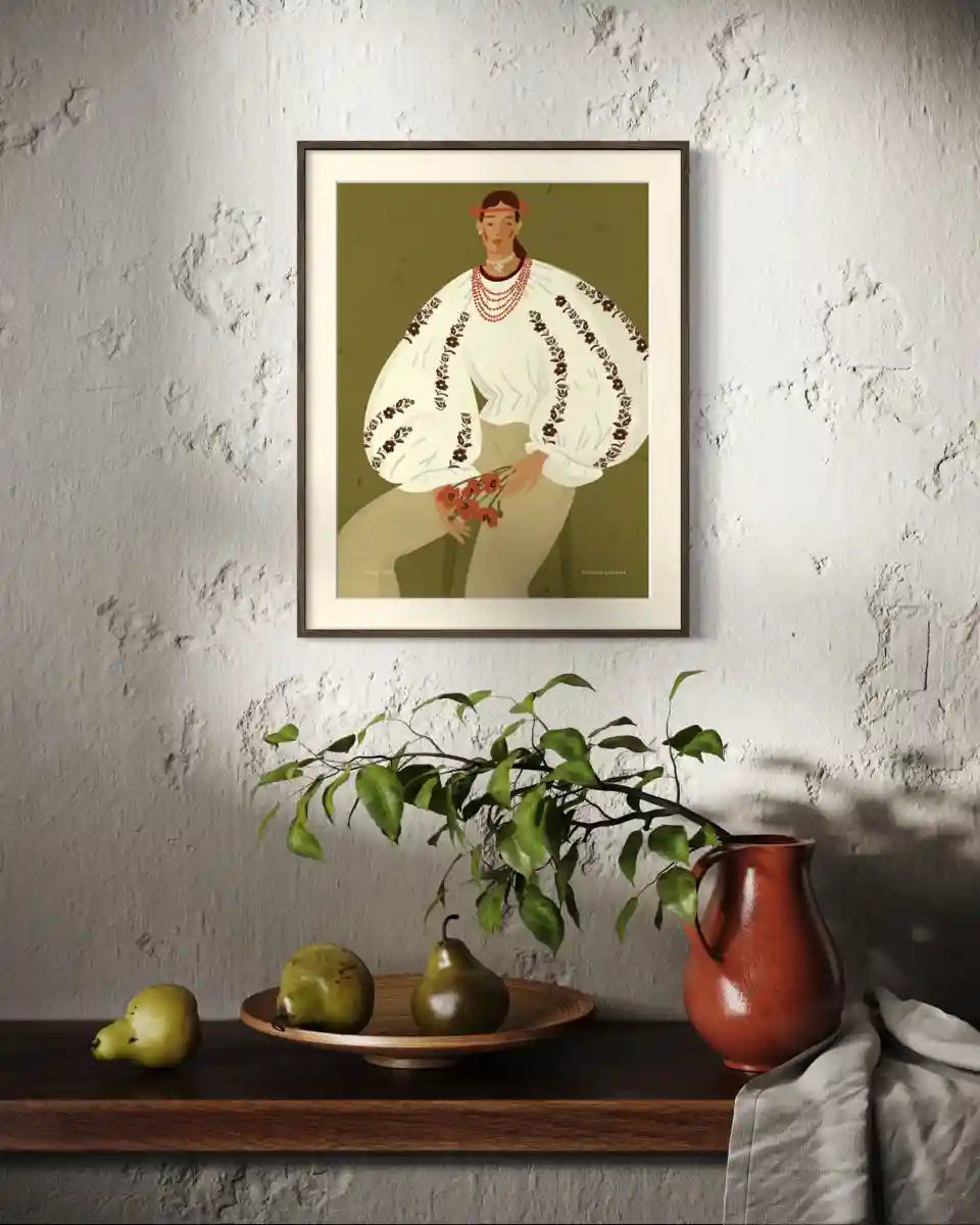 Плакат органічно доповнює сучасні інтерʼєри, додаючи їм тепла, глибини й культурного сенсу.
